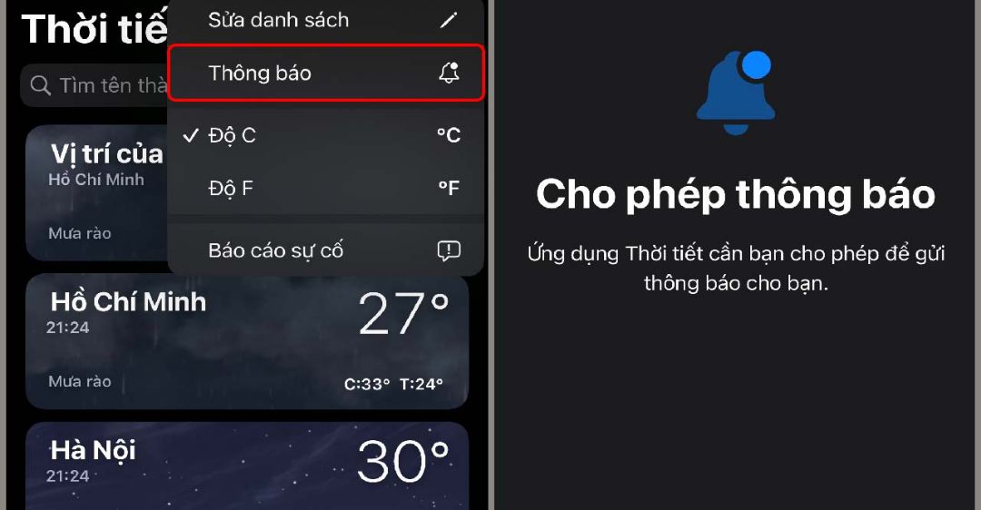 2. Cách bật cảnh báo thời tiết trên iPhone