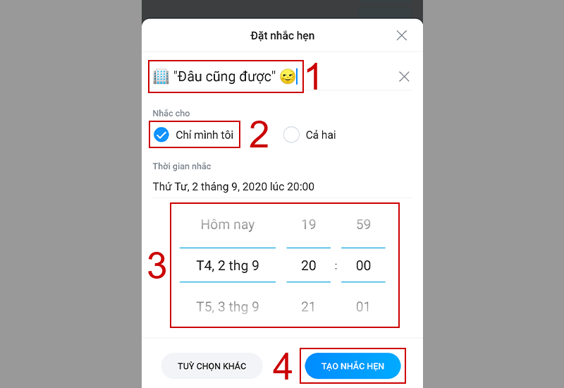 4. Nhắc hẹn chỉ mình tôi trên ứng dụng Zalo