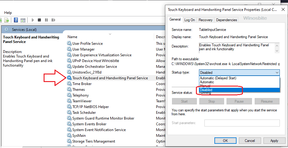 2.3. Cách tắt chuột laptop bằng cách tắt Touch Keyboard Service