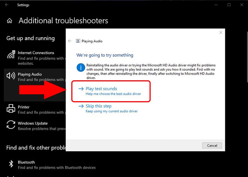 Sau khi đã thực hiện xong thì nếu như laptop cắm tai nghe vẫn phát loa ngoài, thì hãy lựa chọn I didn’t hear anything. Sau đó thì máy tính sẽ tự tìm và khắc phục lỗi.