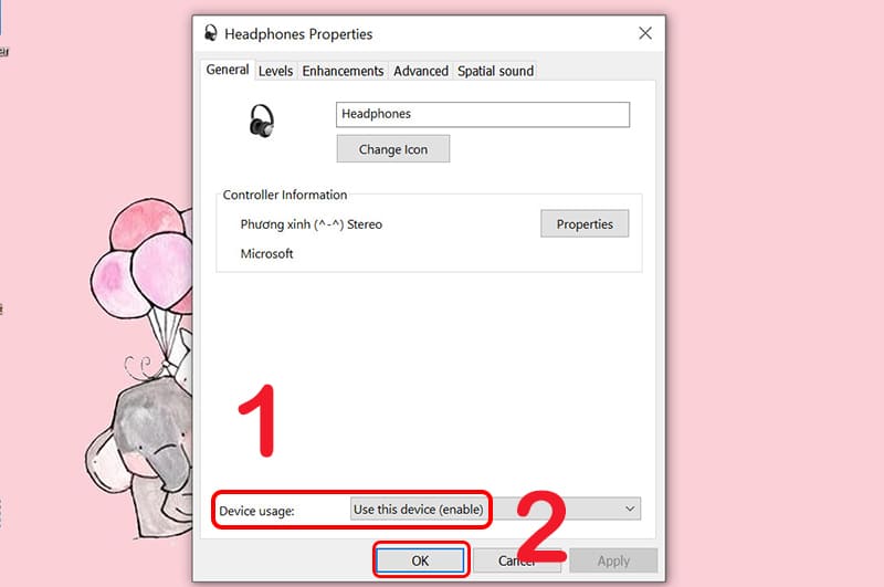 Bước 3: Ở mục Device usage bạn chọn Use this device (enable) rồi click chọn OK.