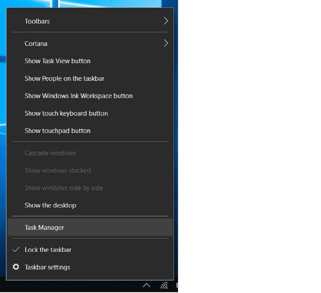 Bước 1: Bạn hãy dùng chuột phải vào thanh Taskbar → bấm chọn “Task Manager” như hình ảnh bên dưới.