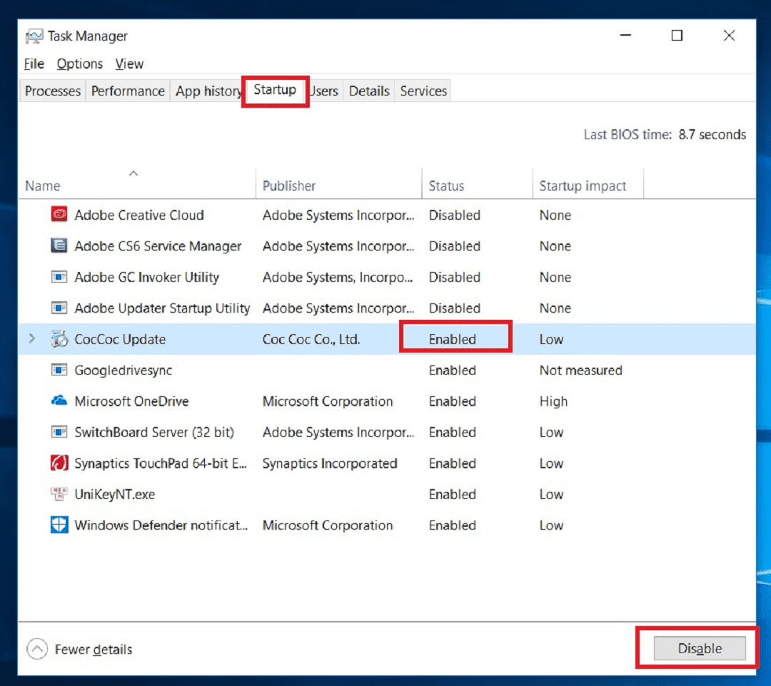 2.3. Khắc phục tình trạng máy tính chạy chậm win 10 bằng cách tắt các chương trình chạy ẩn, khởi động cùng máy tính