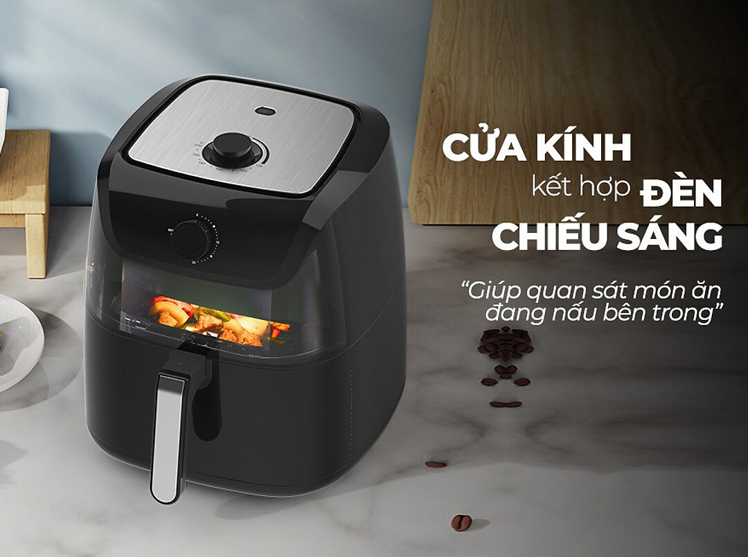 - Dung tích 6L giúp bạn dễ dàng chiên nướng gà vịt nguyên con, heo nguyên miếng cùng lượng lớn thức ăn nhanh chóng.