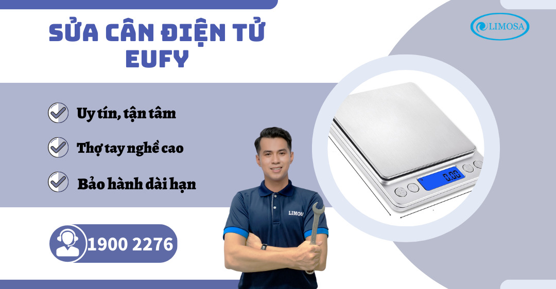 Trung tâm Limosa chuyên cung cấp dịch vụ sửa cân điện tử Eufy nhanh chóng và chuyên nghiệp với giá cả hợp lý. Khách hàng hãy nhanh chóng gọi đến HOTLINE 1900 2276 khi có nhu cầu sử dụng dịch vụ của trung tâm chúng tôi. Đội ngũ chuyên viên kỹ thuật giàu kinh nghiệm của Limosa sẵn sàng phục vụ quý khách bất cứ lúc nào, cam kết có mặt trong thời gian ngắn nhất khi khách hàng cần.