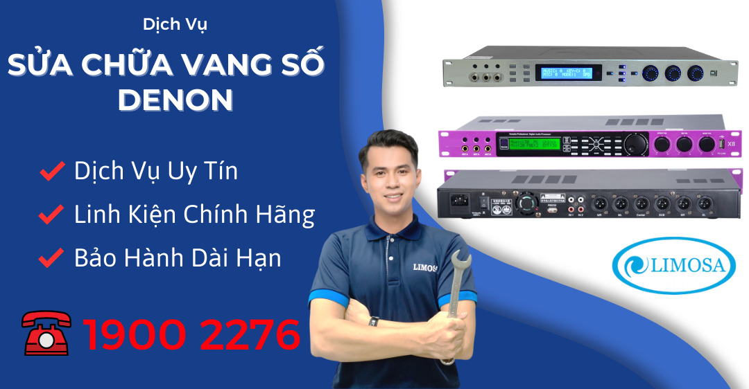 Khi sử dụng dàn âm thanh, đôi khi bạn sẽ gặp phải những vấn đề hư hỏng khó tránh khỏi. Trung tâm sửa chữa điện tử Limosa cung cấp dịch vụ sửa chữa vang số Denon nhanh chóng, uy tín, tận nơi với đội ngũ kỹ thuật viên tâm huyết, nhiệt tình. Gọi đến HOTLINE 1900 2276 để được Limosa hỗ trợ ngay nhé.