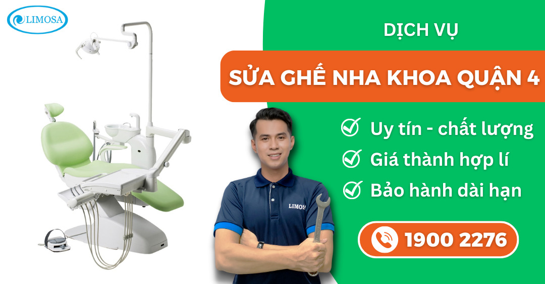 Bạn đang cần dịch vụ sửa ghế nha khoa tại Quận 4? Hãy để Trung tâm sửa chữa điện lạnh – điện tử Limosa giúp bạn. Với đội ngũ kỹ thuật viên chuyên nghiệp và kinh nghiệm, chúng tôi cam kết mang đến sự phục vụ tốt nhất cho ghế nha khoa của bạn. Gọi ngay HOTLINE 1900 2276 để được tư vấn và hỗ trợ đặt lịch sửa chữa. Chúng tôi sẵn sàng đáp ứng mọi yêu cầu của bạn để đảm bảo ghế nha khoa của bạn hoạt động tốt như mới.