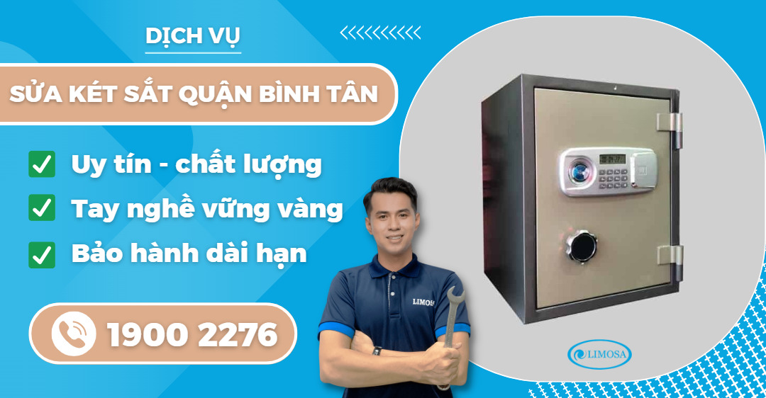 Trung tâm sửa chữa Limosa cung cấp dịch vụ sửa két sắt quận Bình Tân với chất lượng dịch vụ cao, giá cả phải chăng và vô cùng uy tín. Quý khách có nhu cầu sửa chữa, chỉ cần gọi đến số HOTLINE 1900 2276, dù bất cứ thời điểm nào trong ngày, Limosa vẫn luôn sẵn sàng tiếp nhận mọi yêu cầu và điều phối nhân viên đến sửa chữa một cách nhanh chóng.