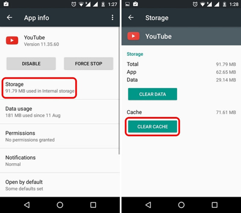 2.3 Hãy thao tác xóa bộ nhớ cache của ứng dụng YouTube: