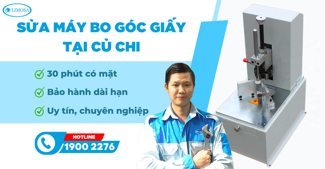 Máy bo góc giấy là một thiết bị quan trọng được sử dụng phổ biến hiện nay tại các văn phòng, photocopy,… Nếu bạn đang sử dụng máy bo góc giấy thì gặp tình huống bỗng dưng máy bị hư hỏng giữa chừng. Đừng ngại ngần và lo lắng mà hãy liên hệ ngay với dịch vụ sửa máy bo góc giấy tại Củ Chi của Limosa qua HOTLINE 1900 2276 để được hỗ trợ kịp thời.