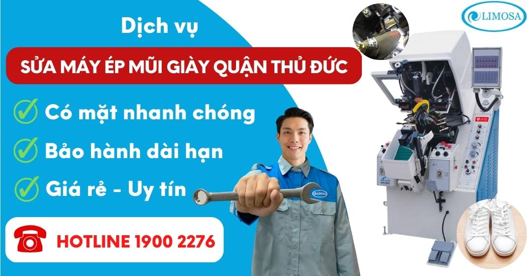 Dù bạn ở Thủ Đức hay ở bất cứ khu vực nào cũng đều có thể gọi HOTLINE 1900 2276 của Limosa nếu muốn tìm hiểu thêm về dịch vụ sửa máy ép mũi giày quận Thủ Đức. Chúng tôi hân hạnh được phục vụ quý khách hàng.