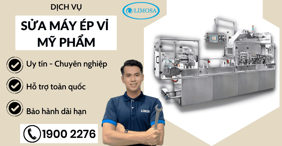 Bạn đang cần tìm kiếm nơi sửa máy ép vỉ mỹ phẩm nhanh chóng. Bài viết dưới đây Limosa sẽ giới thiệu về dịch vụ chúng tôi cung cấp, cam kết máy ép vỉ mỹ phẩm sẽ hoạt động hiệu quả như ban đầu. Để được hỗ trợ, đặt lịch Limosa qua HOTLINE 1900 2276 ngay nhé.