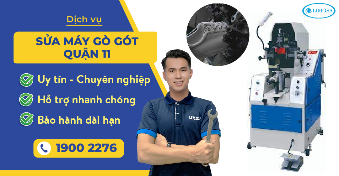 Máy gò gót là 1 loại máy móc phổ biến và không thể thiếu được trong ngành công nghiệp giày da. Tuy nhiên, sau thời gian sử dụng lâu với tần suất hoạt động lớn, máy sẽ gặp nhiều vấn đề trục trặc. Lúc đó, hãy liên hệ ngay với Limosa qua HOTLINE 1900 2276 để sử dụng dịch vụ sửa máy gò gót quận 11, chúng tôi sẽ có mặt ngay lập tức để hỗ trợ bạn.