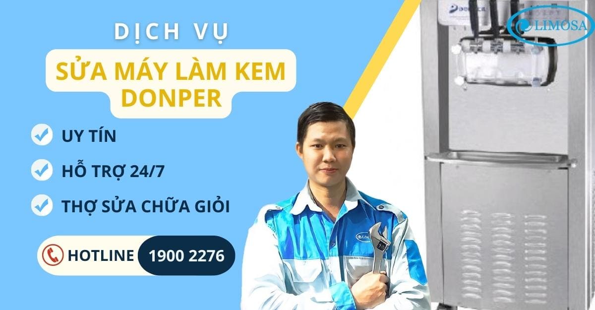 Máy làm kem Donper đang sử dụng thì xuất hiện sự cố hư hỏng khiến việc sản xuất kem bị ảnh hưởng? Bạn đang cần tìm kiếm gấp địa chỉ sửa máy làm kem Donper có uy tín và hỗ trợ nhanh chóng? Hãy liên hệ Limosa qua số điện thoại: HOTLINE 1900 2276 để chúng tôi cung cấp dịch vụ tận nơi ngay nhé.