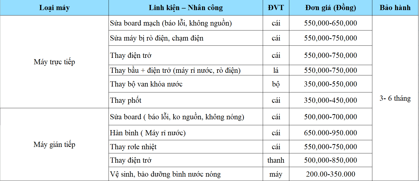 1. Limosa chuyên sửa máy nước nóng quận Bình Thạnh với các lỗi sau: