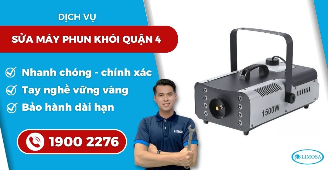 Máy phun khói là thiết bị sử dụng lâu ngày dễ dàng gặp phải những lỗi hư hỏng. Nếu đang gặp phải vấn đề sử dụng máy hãy liên hệ ngay dịch vụ sửa máy phun khói quận 4 của Trung tâm sửa chữa điện lạnh – điện tử Limosa với HOTLINE 1900 2276 để được hỗ trợ trong vòng 30 phút nhé!