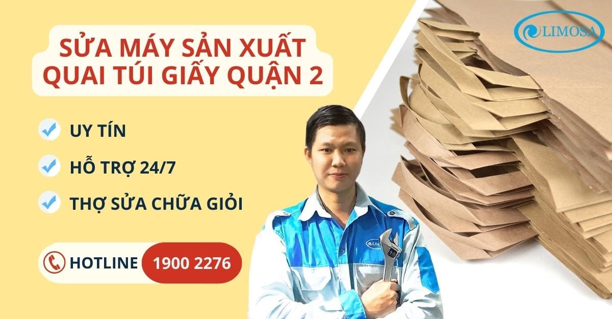 Sau nhiều năm kinh nghiệm hoạt động, Limosa tự tin là đơn vị sửa máy sản xuất quai túi giấy quận 2 dẫn đầu thị trường sửa chữa hiện nay. Để đặt lịch dịch vụ sửa chữa máy sản xuất quai túi giấy quận 2, hãy liên hệ với chúng tôi qua HOTLINE 1900 2276 – 0933 599 211 ngay nhé!