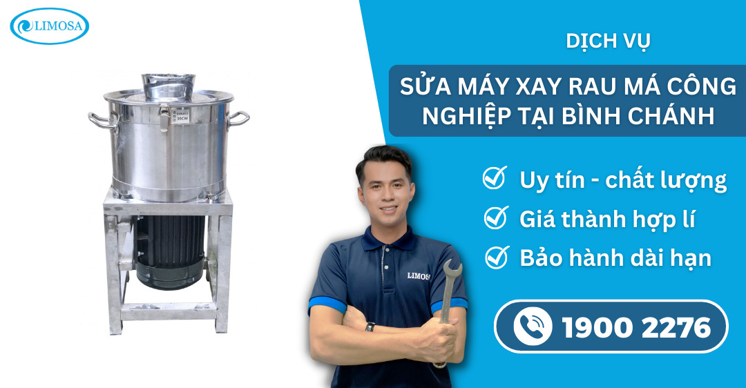 Trung tâm sửa chữa điện lạnh – điện tử Limosa cung cấp dịch vụ sửa máy xay rau má công nghiệp tại Bình Chánh với đội ngũ kỹ thuật viên chuyên nghiệp và nhiều kinh nghiệm. Gọi ngay tới số HOTLINE 1900 2276 để được hỗ trợ sử dụng dịch vụ ngay nhé!