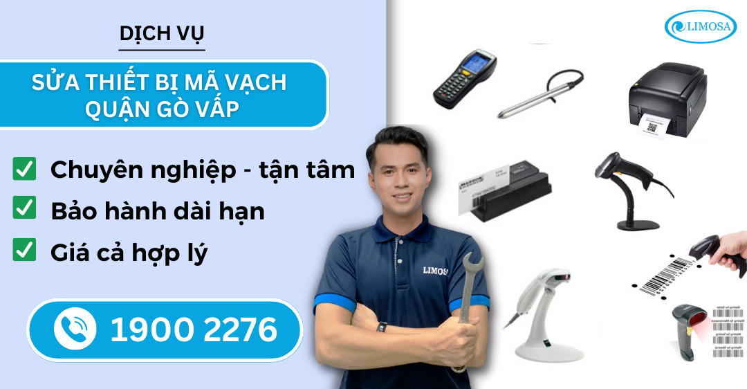 Bạn đã lâu không bảo dưỡng nên thiết bị mã vạch của bạn gặp hư hỏng, bạn lo lắng không biết tìm đơn vị nào sửa chữa uy tín, chất lượng. Đừng lo lắng vì đã có dịch vụ sửa thiết bị mã vạch quận Gò Vấp uy tín, giá cả cạnh tranh của Limosa. Hãy liên hệ ngay cho trung tâm Limosa qua HOTLINE 1900 2276 để được hỗ trợ nhanh nhé!