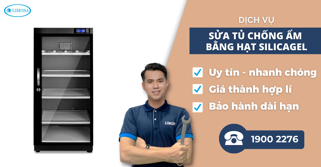 Nếu không may tủ chống ẩm nhà bạn đang gặp phải sự cố và cần tìm kiếm một đơn vị cung cấp dịch vụ sửa chữa nhanh chóng, uy tín trên thị trường thì hãy liên hệ ngay cho sửa chữa điện tử Limosa theo số HOTLINE 1900 2276 để được trải nghiệm dịch vụ sửa tủ chống ẩm bằng hạt Silicagel chất lượng nhất.