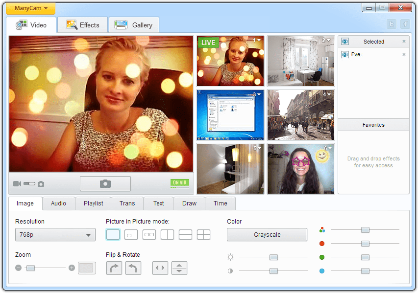Ưu điểm lớn nhất của ManyCam chính là công cụ này rất linh hoạt, bởi nó hỗ trợ nhiều chương trình và dịch vụ, bạn có thể tích hợp nó sử dụng làm nguồn camera cho Skype, Facebook, hay Viber,…